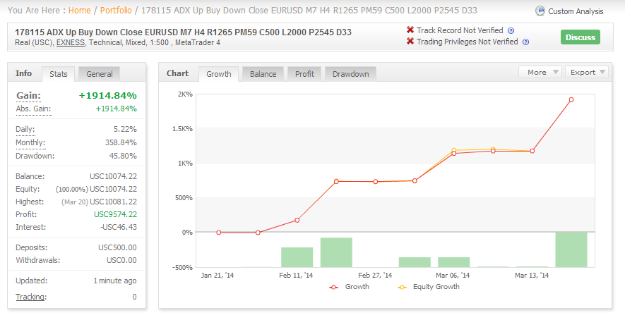 วันที่ 26 March 2014 EA ตัวนี้ ปิด Order เองเกือบทั้งหมด โดยเฉพาะที่ Margin >100USD  เลยทำการ ถอนเงินออก เพื่อนำไปใช้ในรูปแบบดาวกระจายดู เก็บกราฟ สุดท้ายนี้ไว้ก่อน รวมแล้ว ปล่อยมาตั้งแต่วันที่ 24 Feb 2014 ก็ประมาณเดือนหนึ่ง  ทำกำไรได้ เฉียด ๆ 2000% ... หวังว่าจะเป็น ฐาน และกำลังใจ ให้เราก้าวต่อไป และสำหรับคนที่สนใจ